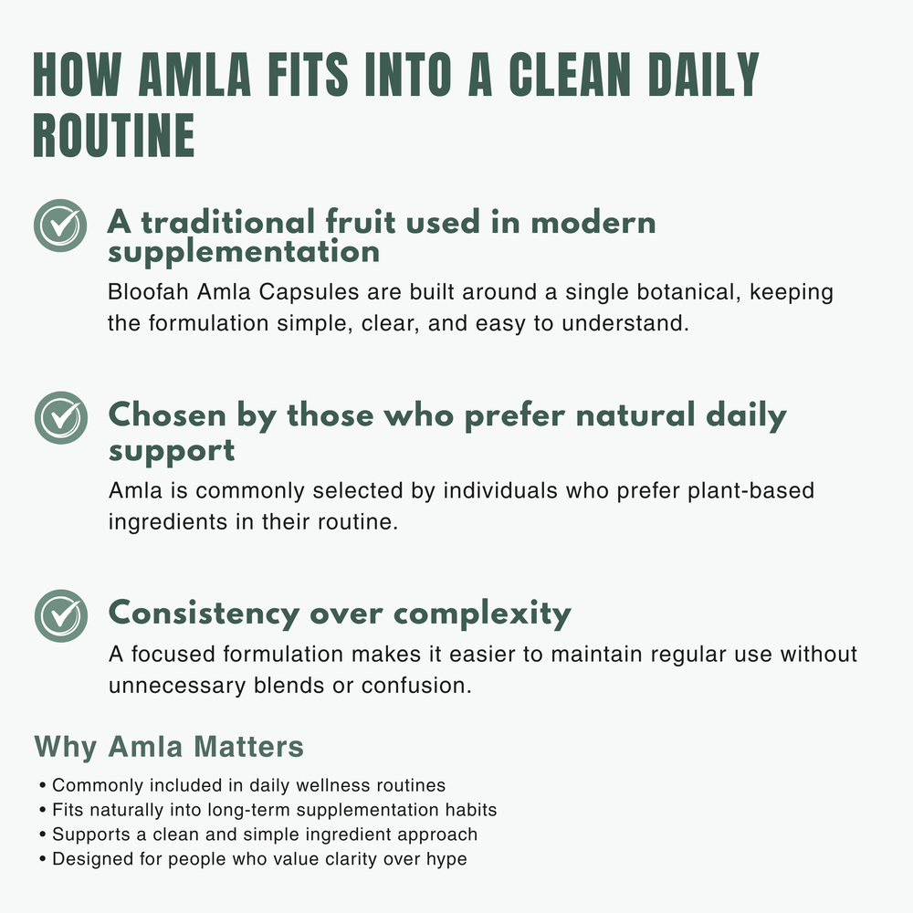 Bloofah AF Amla Capsules are crafted for individuals seeking a clean, plant-based supplement to support daily wellness, vitality, and long-term routine use. Amla, also known as Indian Gooseberry, has been traditionally valued across generations for its role in everyday nutrition and holistic wellness practices.